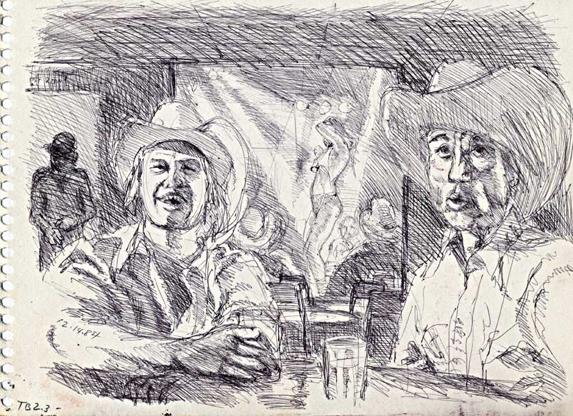 TB2.3 - Cowboys at Circe's, 1984, ballpoint, 9 x 12 inches